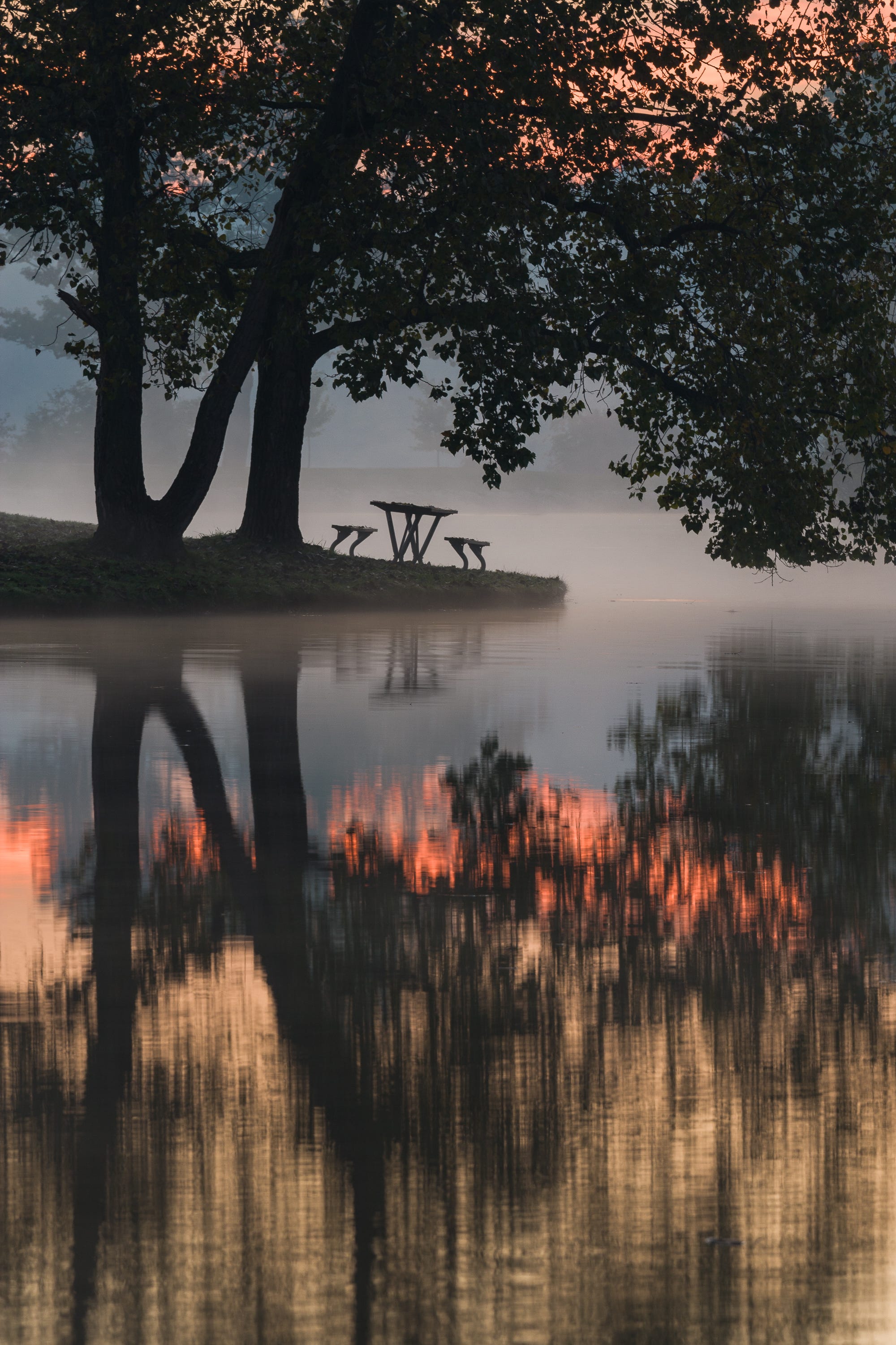 When teaching a workshop several years ago in Ohio, we went out for sunrise/morning light. There wasn’t a stitch of a cloud, and very little fog, which was a disappointment. Yet we did find this one pond, and worked with what we had. I loved the mauve hues and the overall scene was pretty. But what really got me excited was the picnic table under the tree on the right. After I made this photograph, I put on a longer focal length, and made the second image. They are both fine photographs, but the tighter framing brought out the story, and my vision, better. Why? Because when I viewed the big scene, I was feeling the peacefulness of the morning, how lovely it would be to sit on the table and take it all in and I wanted the viewer to feel that, too. The tighter framing communicated that more strongly.